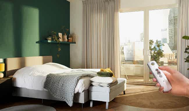 Perdeyi açıp kapatmayı uzaktan sağlar, kullanım kolaylığı sunar.